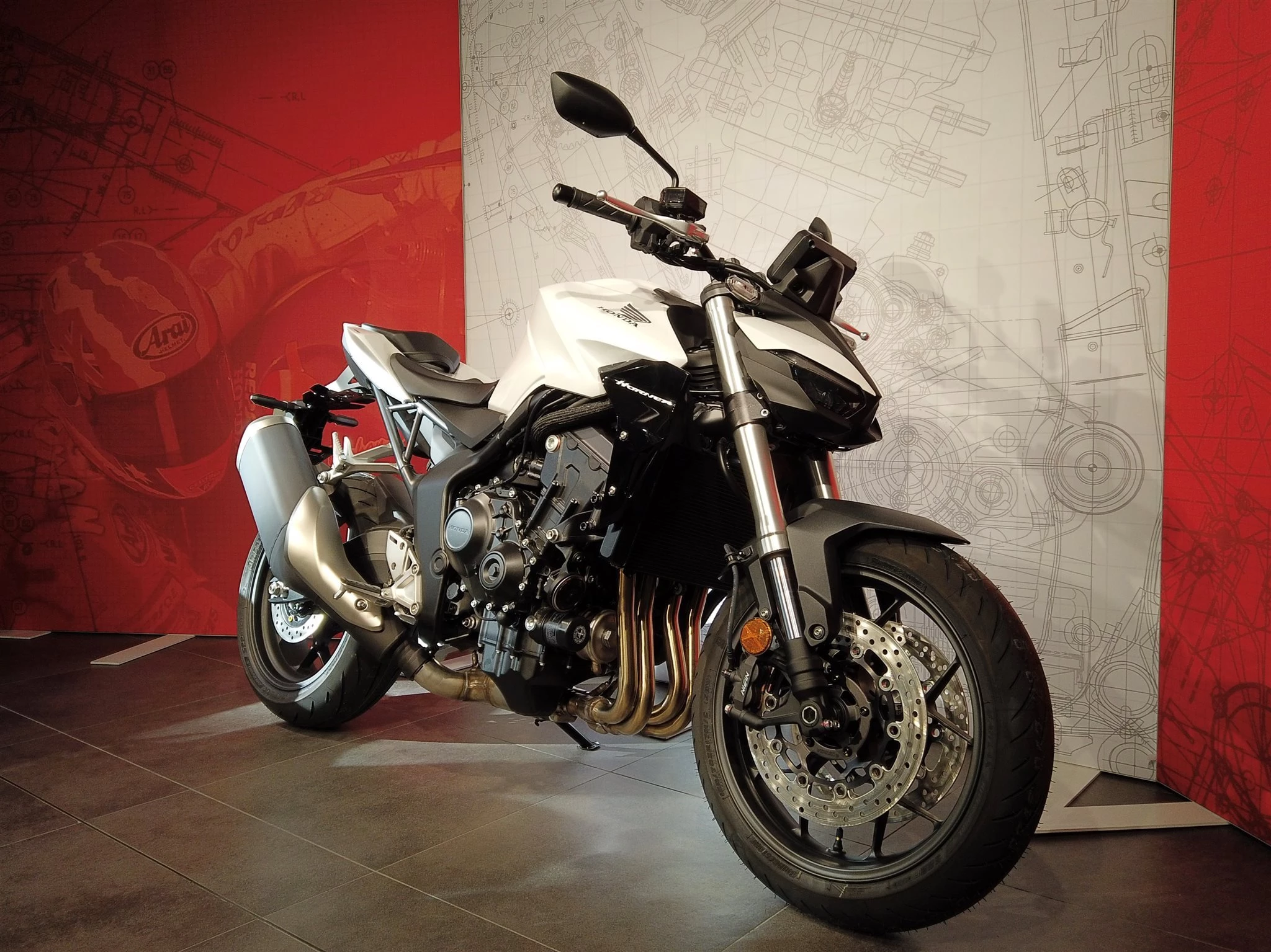 Die Hornet-Familie ist jetzt vollständig und unser Topmodell sticht heraus. Die neue CB1000 Hornet mit ihrem Vierzylindermotor ist ein erstklassiges Naked Bike, das den Asphalt zum Glühen bringt. Throttle By Wire sorgt für präzise Kontrolle, während das Fahrwerk mit der einstellbaren SHOWA 41mm SFF-BP Upside-Down-Gabel und dem Pro-Link-Federbein ausgestattet ist. Die unverfälschte, aggressive Streetfighter-Attitüde wird durch einen markanten LED-Doppelscheinwerfer unterstrichen. Das 5-Zoll TFT-Farbdisplay und die Honda RoadSync-Konnektivität sorgen für die nötigen Informationen. Kann es losgehen?