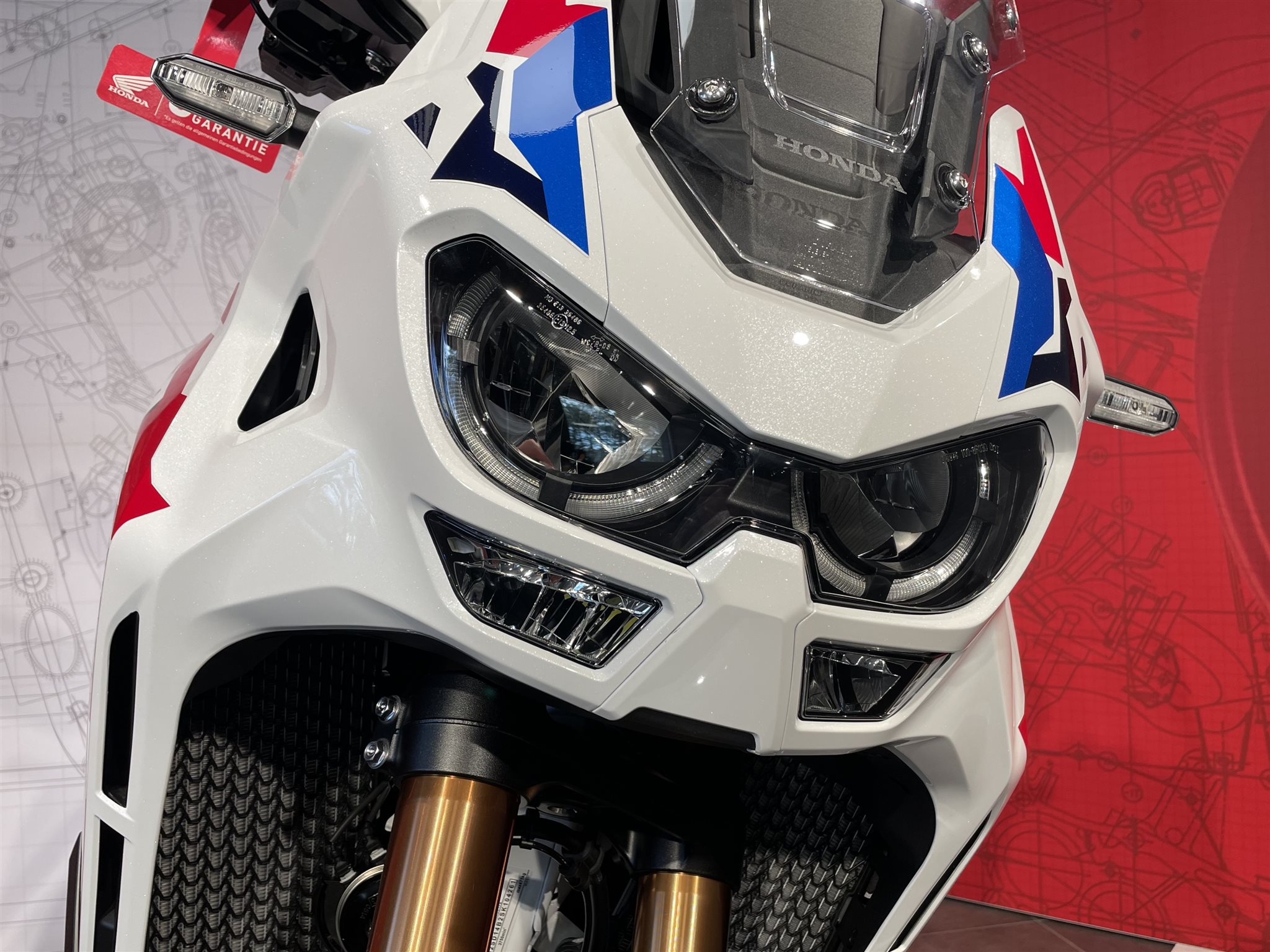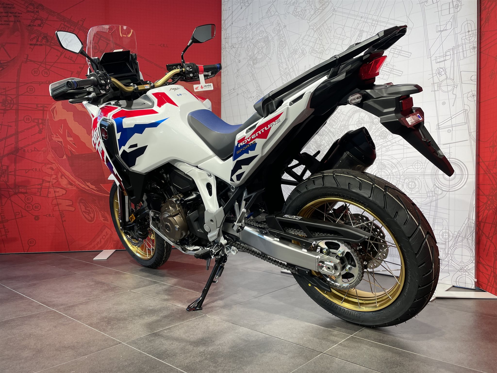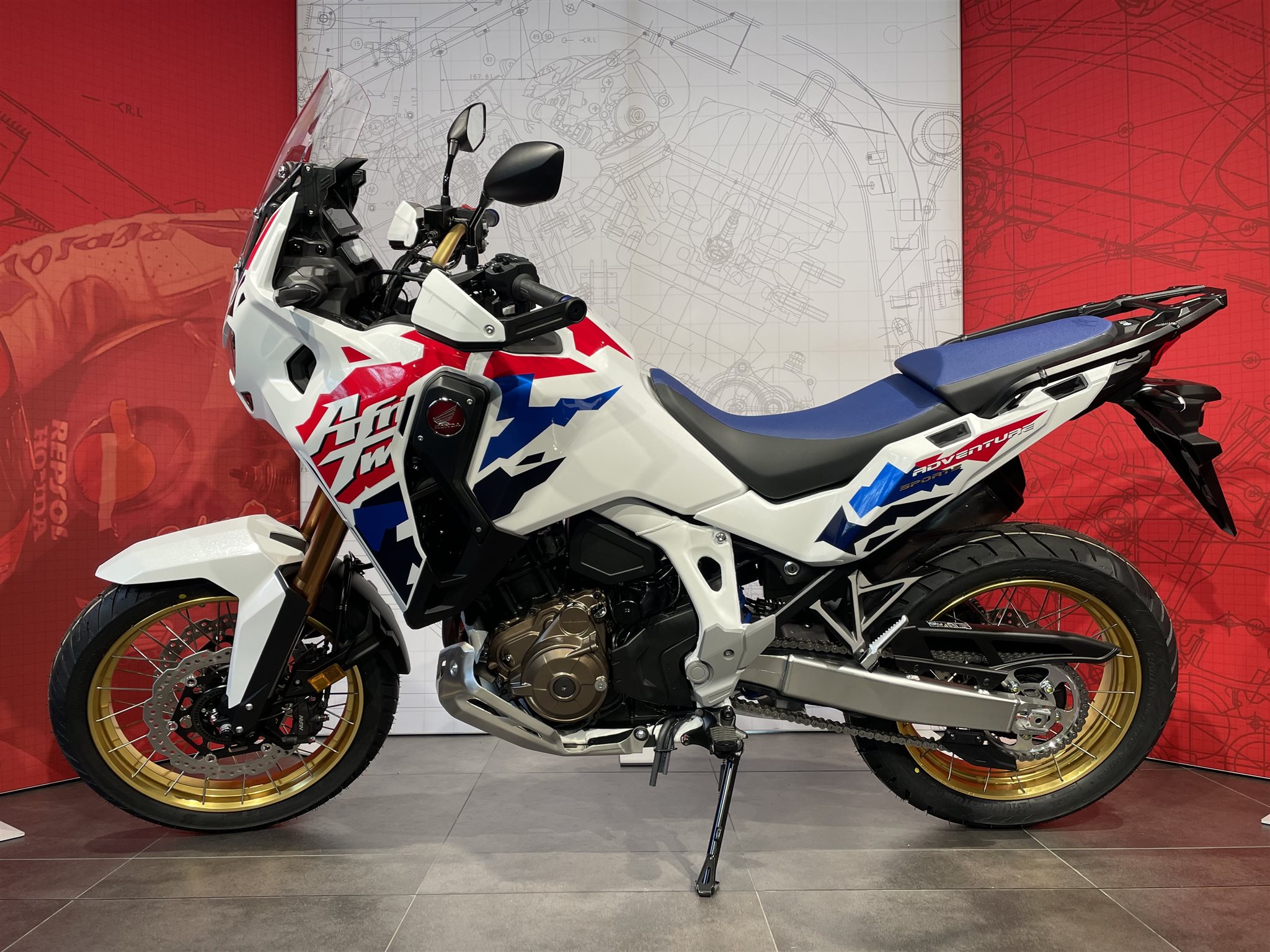 Die neue Africa Twin Adventure Sports ES ist eine ganz besondere Maschine. Sie zeichnet sich durch ein höheres Drehmoment im mittleren Drehzahlbereich für eine starke Beschleunigung bei Überholvorgängen aus. Das 19-Zoll-Vorderrad mit einem 110/80-19-Reifen, die niedrigere Sitzhöhe und die elektrisch einstellbare Showa-EERA-Aufhängung sorgen für optimales Handling auf der Straße. Die neue Verkleidung und eine neues Windschild bieten jederzeit perfekten Windschutz, sodass du bei langen Touren den 24,8 Liter fassenden Tank voll auskosten kannst. Genau dafür haben wir dieses Motorrad gebaut.